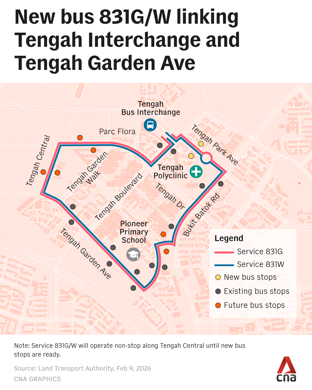 The transport authority announced in October 2025 that commuters in the northeast as well as Tengah and Brickland would have a total of 11 new bus services and two more route extensions by the end of 2025. All 13 have since been implemented, Mr Siow said.