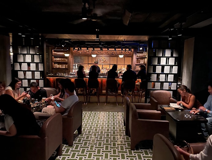 MIUS is a mid-century modern space by award-winning Hong Kong bartender Shelley Tai. Her homecoming project is all about bringing out the best in simple things, such as a highball of frozen whisky and chilled Japanese soda and a warm Matcha Mori with whisky, matcha, coconut and salted vanilla cream layers. Food is excellent too: Get the comforting chive and pork dumplings in an 18-hour boiled broth of Three Yellow chicken, kombu and sake, and crispy thick beef sukiyaki toast with confit egg yolk.