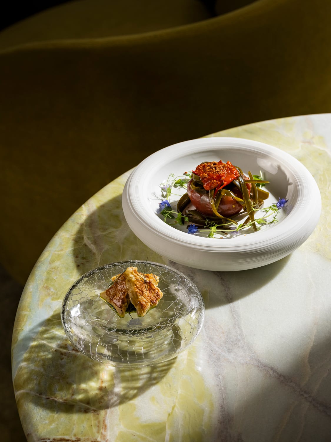 Kombu pasta with tofu knots ravioli filled almond ricotta. (Photo: The Henderson Hospitality)