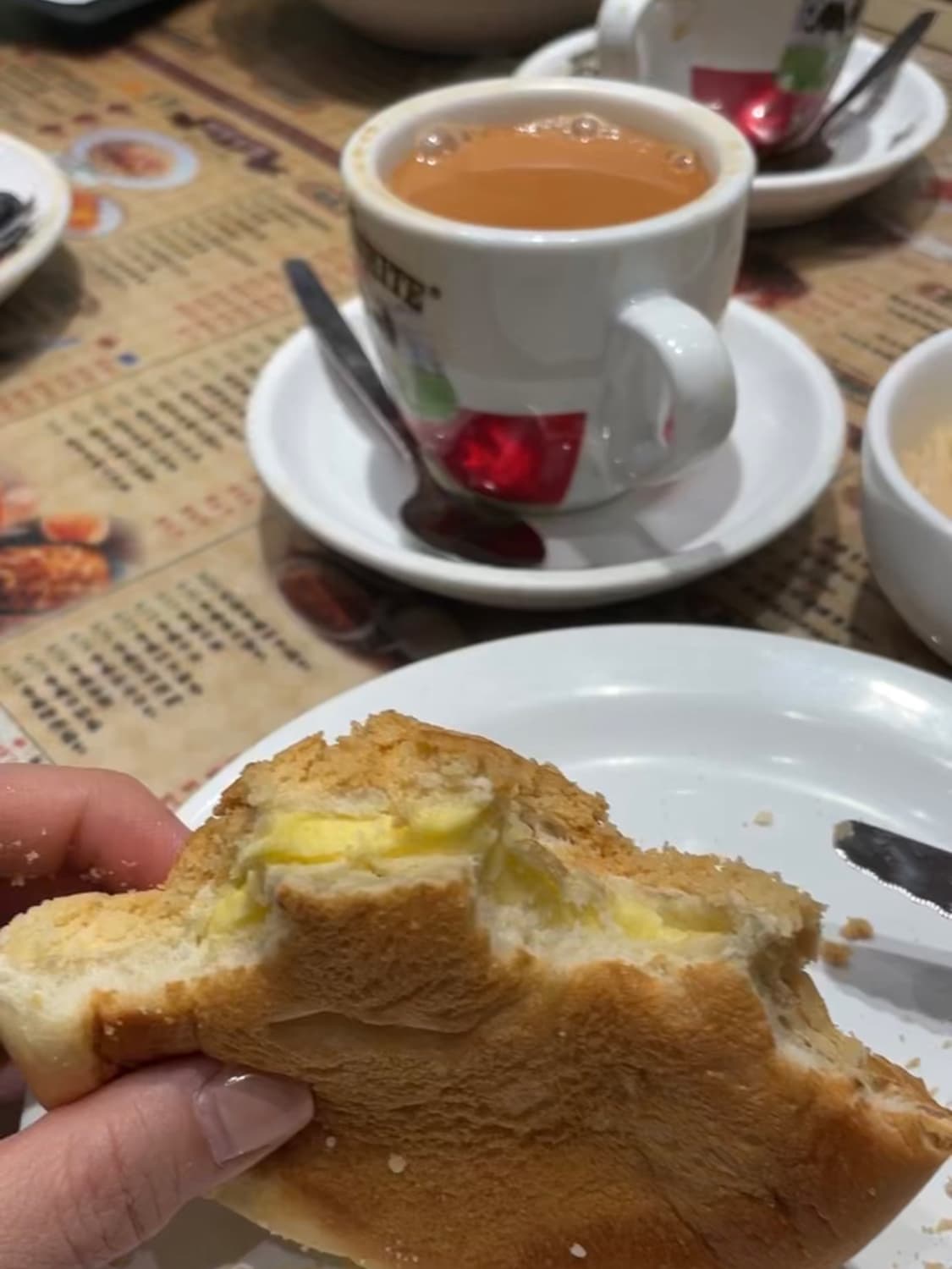 The quintessential Hong Kong breakfast of milk tea and bolo bun with butter at Red Tea. (Photo: Grace Ma)