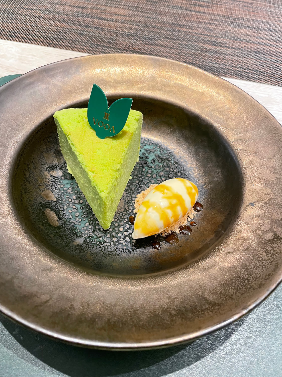 Pandan souffle cheesecake with coconut ice cream. (Photo: Grace Ma)