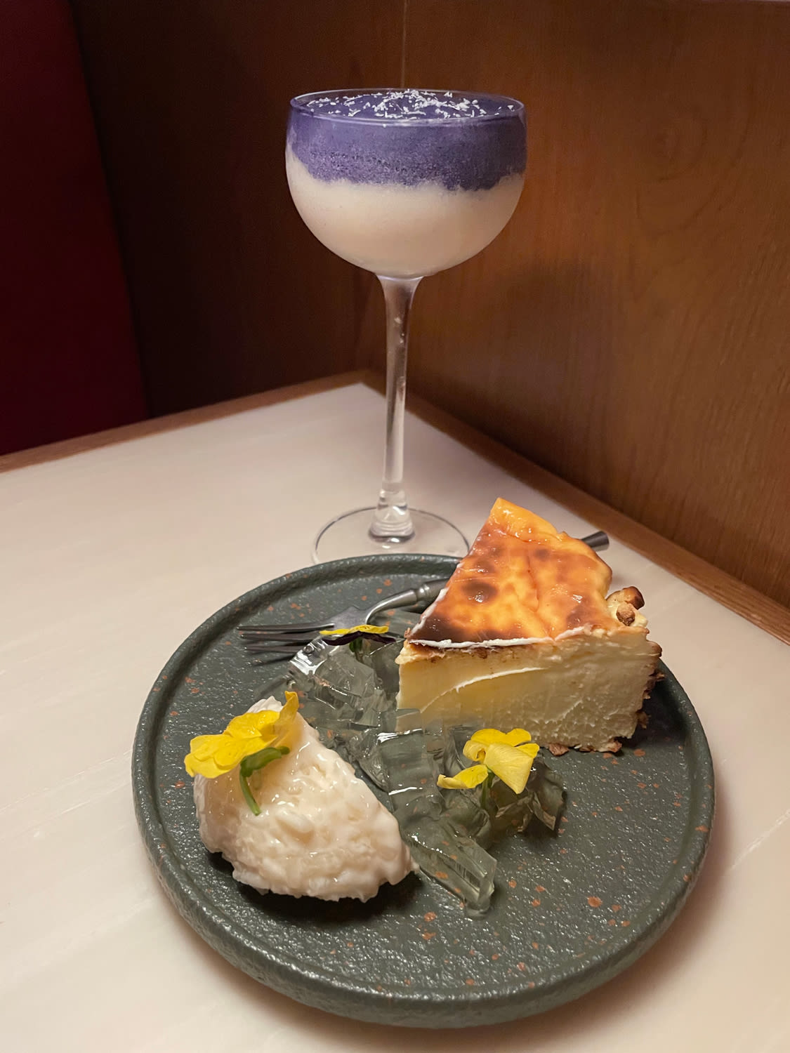 Orh Nee 2.0 cocktail and Moutai cheesecake. (Photo: Grace Ma)