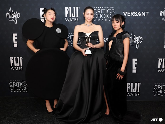 (From left) Audrey Nuna, EJAE, and Rei Ami, winners of the Best Animated Feature Award and the Best Song Award for Golden in the film KPop Demon Hunters pose in the press room during the 31st Annual Critics Choice Awards at Barker Hangar on Jan 4, 2026 in Santa Monica, California. (Photo: Amy Sussman/Getty Images for Critics Choice Association/AFP)