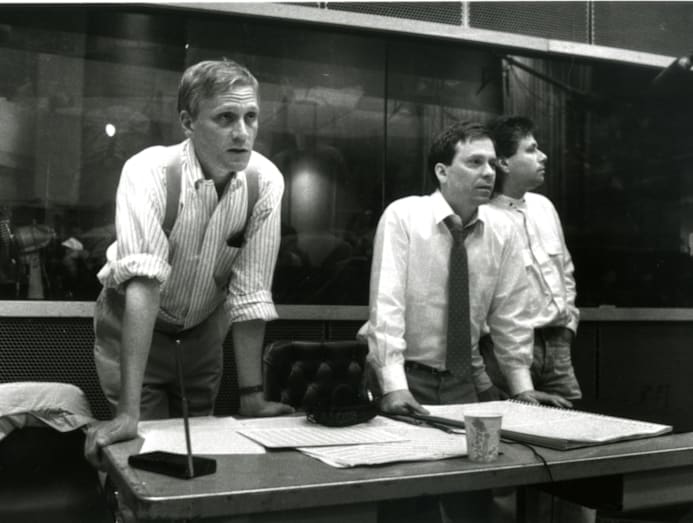 From left: Lyricist Howard Ashman, orchestrator Danny Troob and Alan Menken during the Beauty and the Beast vocal and orchestra pre-recording. (Photo: Disney Theatrical Group)