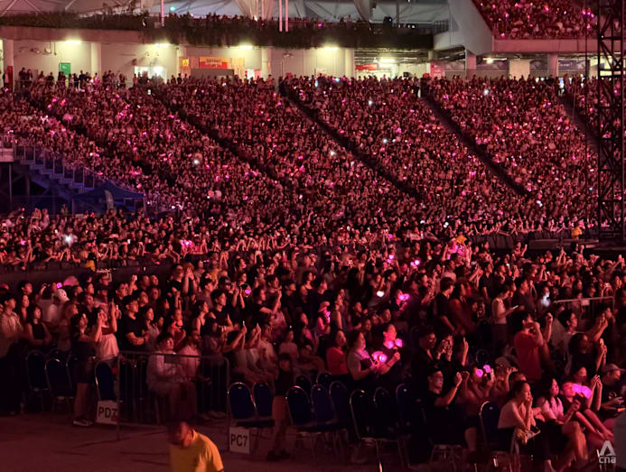 A sea of pink fills the crowd during Blackpink’s Deadline concert at the Singapore National Stadium on Nov 28, 2025. (Photo: CNA/Mak Jia Kee)
