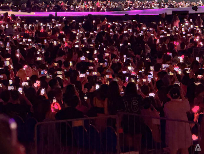 Crowds holding up their phones during Blackpink’s Deadline concert at the Singapore National Stadium on Nov 28, 2025. (Photo: CNA/Mak Jia Kee)