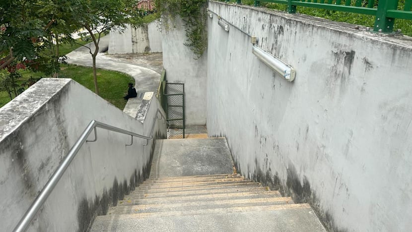The staircase leading up from Bedok North Avenue 1 to the back of City Sprouts Bedok on Jan 6, 2026. (Photo: CNA/Fabian Koh)