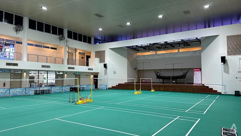 A view of the badminton court space in the main atrium of City Sprouts Bedok on Jan 6, 2026. (Photo: CNA/Fabian Koh)