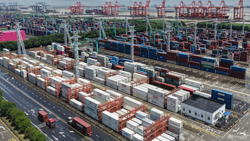 Trucks loaded with containers move through a container terminal port in Shanghai, China, Jul 30, 2025. (Photo: Chinatopix via AP)