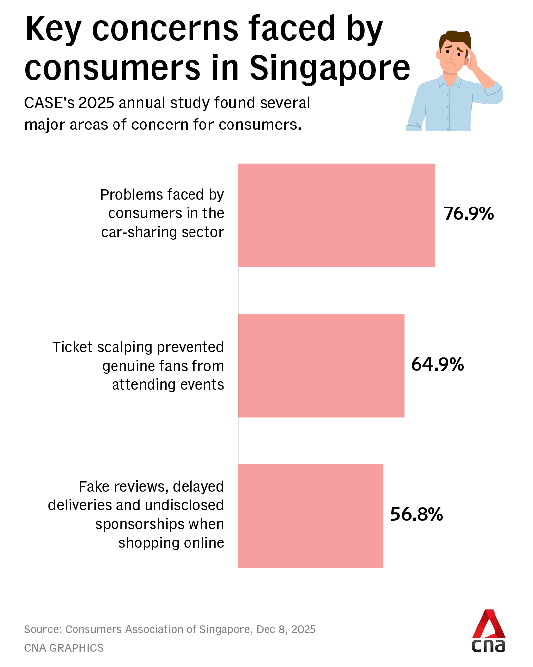 SINGAPORE: Consumers in Singapore flagged fake online reviews, ticket scalping and car sharing as key areas of concern in a survey commissioned by the Consumers Association of Singapore (CASE).