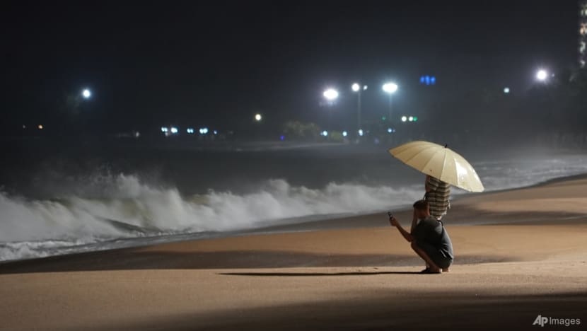 People watch rough waves caused by Typhoon Kalmaegi in Khanh Hoa, Vietnam on Nov 6, 2025. (Photo: AP/Hau Dinh)