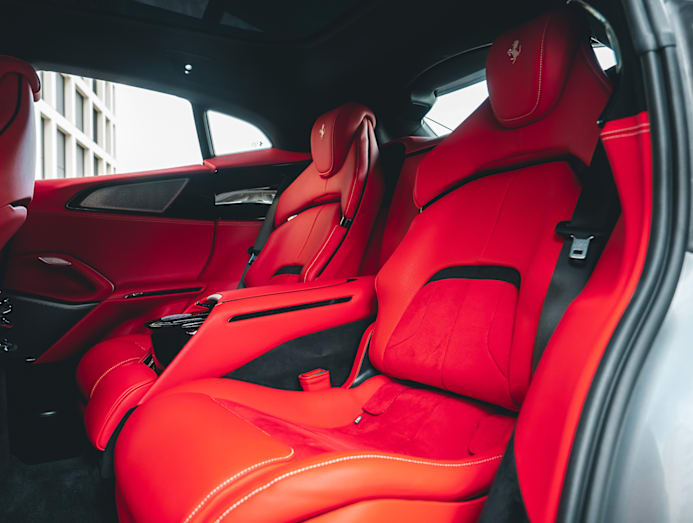 The car features striking, modern styling, highlighted by Ferrari's ‘welcome doors’. These electric, rear-hinged doors reveal a panoramic interior, yet the conventional B-pillar ensures structural rigidity. This allows enough space for four full-size adults to sit comfortably, and the rear compartment can swallow a generous 473 litres.