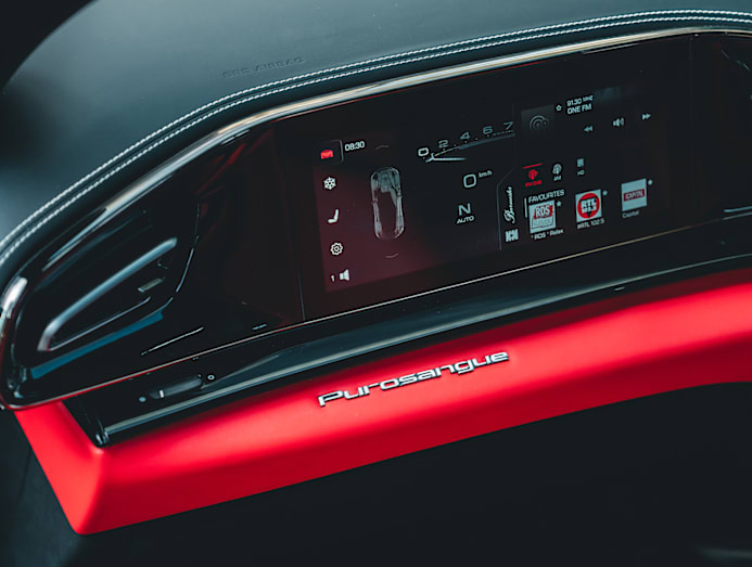 Ferrari’s clients will always spring for custom finishes, and the marque indulges them completely. If you fancy a roof you can tint, at the flick of a switch, you can pick the electrochromic glass. If you want your massage seats to knead out track-day knots, there are five types, three levels of intensity, and 10 airbags for peace of mind. The Purosangue will even scrub the air with a sensor that filters out particles up to PM2.5.