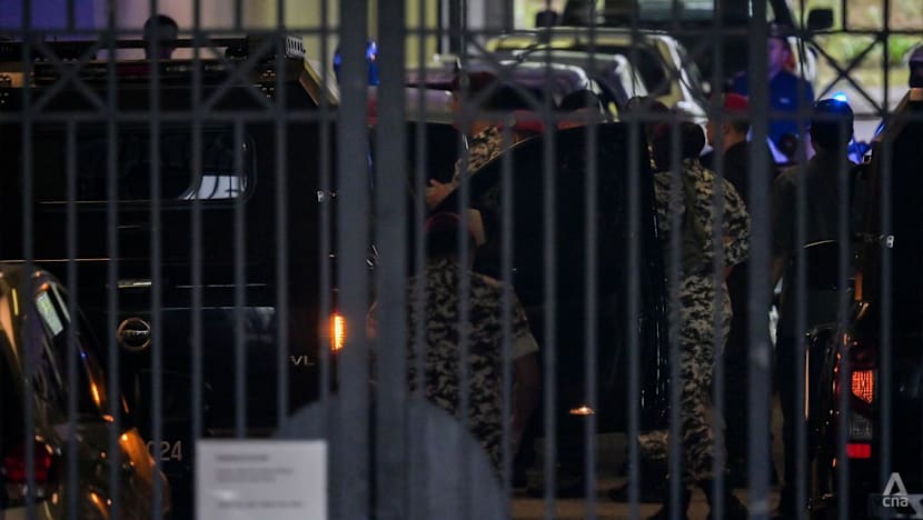 A motorcade and security officials escorting former prime minister Najib Razak were seen arriving at the Palace of Justice in Putrajaya on Dec 26, 2025. (Photo: CNA/Fadza Ishak)