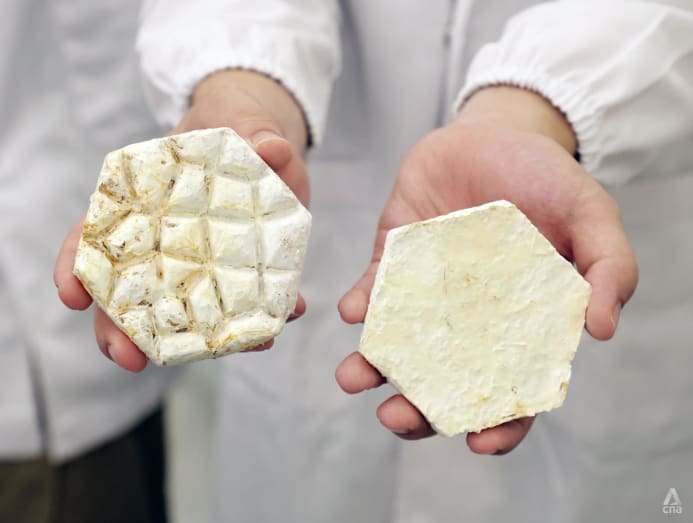 “Fungi tiles" that have the texture of elephant skin can potentially be a sustainable alternative to thermal insulation made from polystyrene that are commonly used to cool buildings today. (Photo: CNA/Ooi Boon Keong)