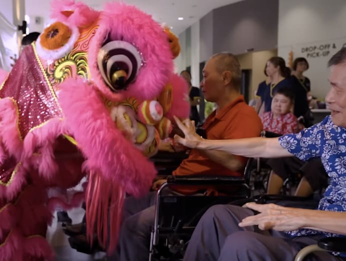 Jeanette Aw performing a lion dance at a nursing home. (Photo: YouTube/JA Unscripted)