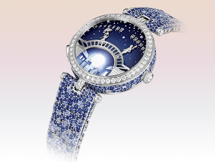Complementing these romantic vignettes are bejewelled bracelets set entirely with diamonds and graduated sapphires: Soft pink for Aube; fuchsia for Soiree; light blue for Matinee; and deep blue for Clair de Lune. The bracelet’s intricate mesh construction allows fluid movement around the wrist, ensuring the timepieces wear comfortably. Additionally, each watch comes with second complementary interchangeable alligator strap to be chosen at the time of purchase.