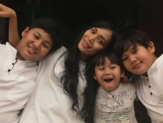 Amyza Aznan with her three sons, the late Andre Mikhail (left), Adrian Adam (right), and Ayden Andika (second from right). (Photo: Amyza Aznan)