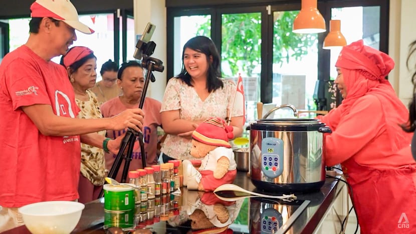 Siti Adriana Muhamad Rasip (second from right) sharing a light-hearted moment with residents during a Kitchen Connections session.