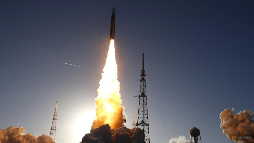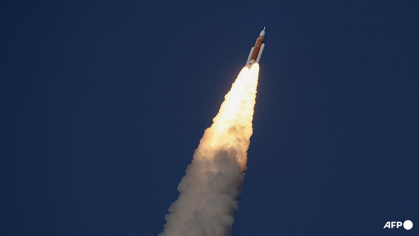 NASA's Space Launch System (SLS) rocket, topped with its Orion crew capsule, roared to life just before sunset at 10.35pm GMT (6.35am, Thursday, Singapore time) at the agency's Kennedy Space Center to lift its first crew of three US astronauts and a Canadian astronaut off Earth, a thunderous ascent leaving behind a towering column of thick white vapour.