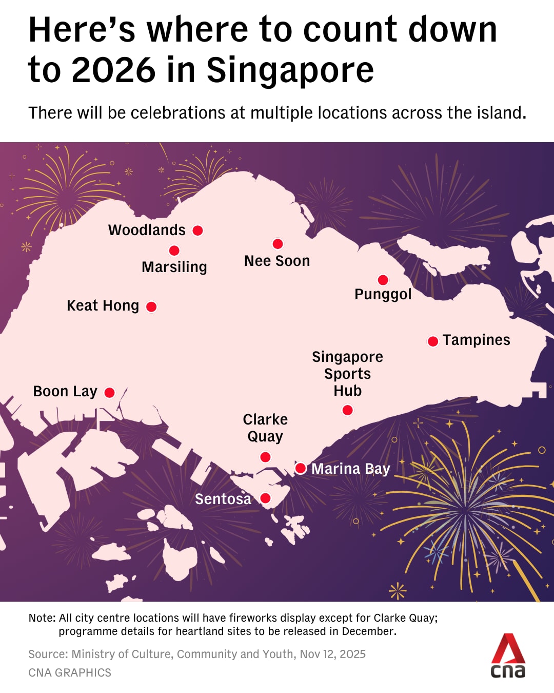 Apart from Marina Bay and Kallang, various activities are also lined up at Sentosa and Clarke Quay, as well as seven heartland sites.