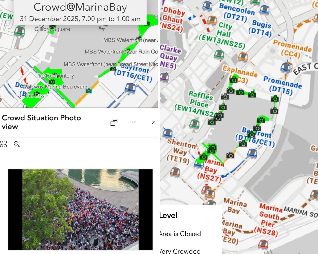 Signs will be put up to guide people on the routes for dispersal. These include six new digital animated signboards placed around Marina Bay to provide information such as alternate MRT routes and last train timings.