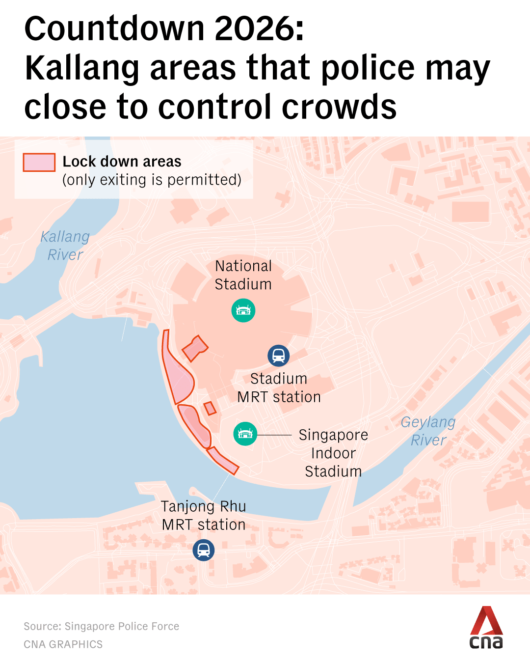 Some entrances and exits of MRT stations around Marina Bay and Kallang Basin will be closed to regulate crowd flow.