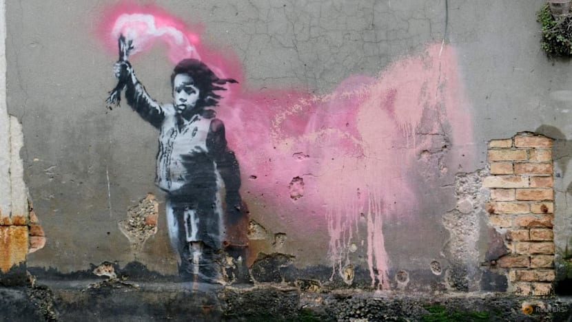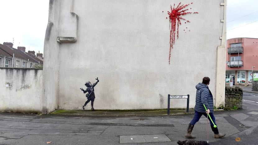 A suspected mural by artist Banksy is pictured in Marsh Lane in Bristol, Britain, on Feb 13, 2020. (File photo: Reuters/Rebecca Naden)