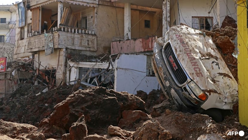 This photograph taken during a media tour organised by the Hezbollah shows a damaged and overturned ambulance at Nabi Sheet town after an Israeli military operation in the Bekaa Valley of Lebanon, on March 7, 2026. (Photo: AFP/Nidal Solh)