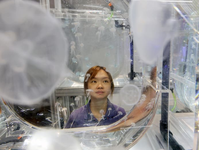 In the aquarist lab of the Singapore Oceanarium, I watched Ms Vivian Cavan transfer hundreds of baby sea jellies from one vessel to another with a pipette.