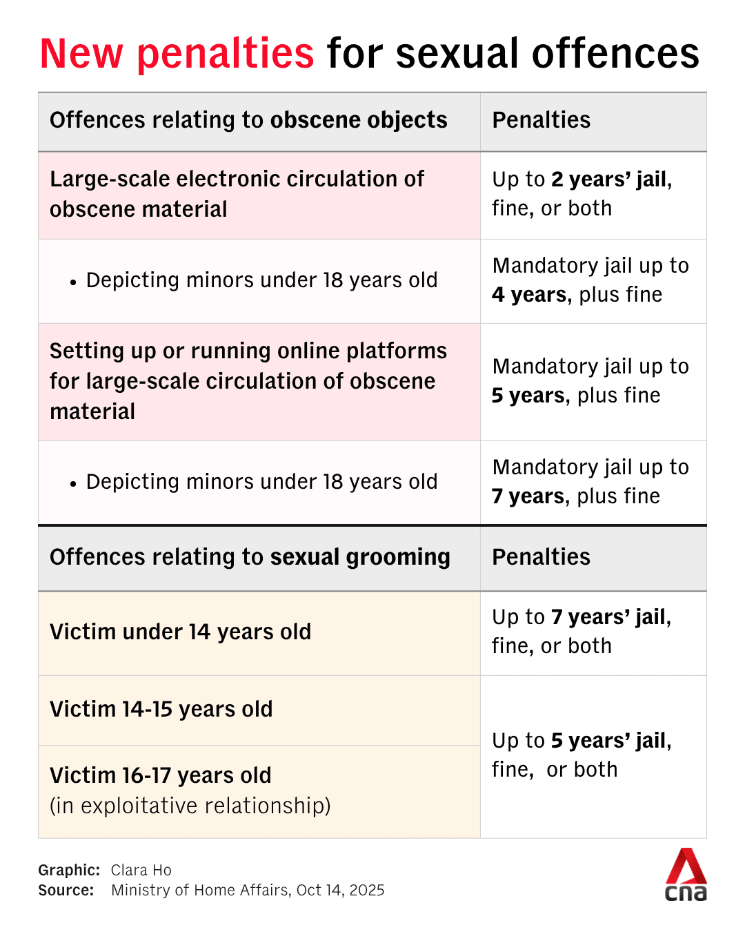 This is to better protect minors and align with international conventions on child pornography, said the Ministry of Home Affairs in a press release on Tuesday (Oct 14).