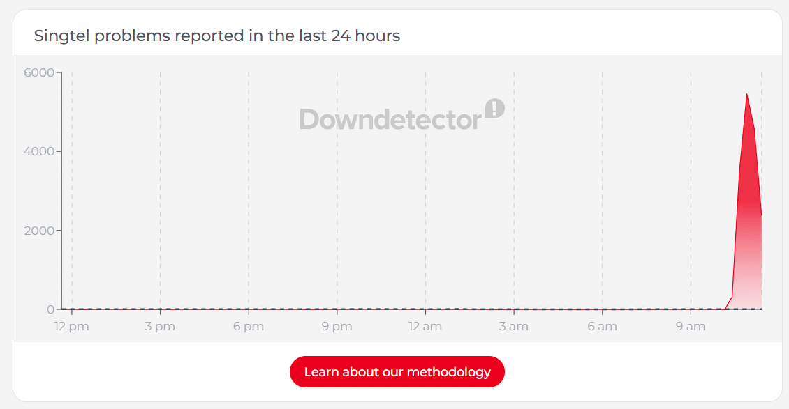 The Downdetector website, which tracks outages by collating status reports, showed over 5,300 reports related to Singtel as of 11.07am.