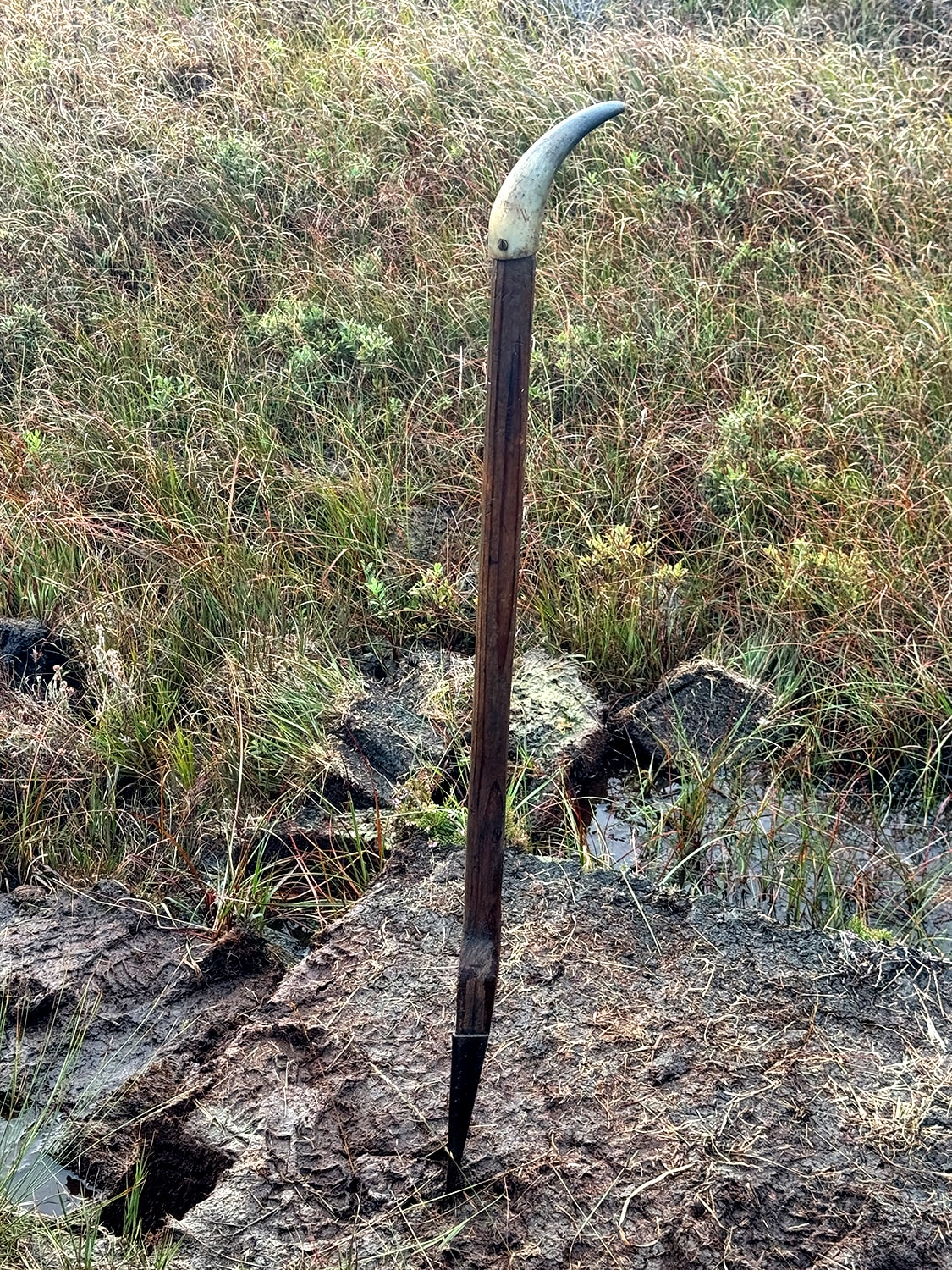 A ash-handled peat spade topped with a cow horn. (Photo: Chris Dwyer)