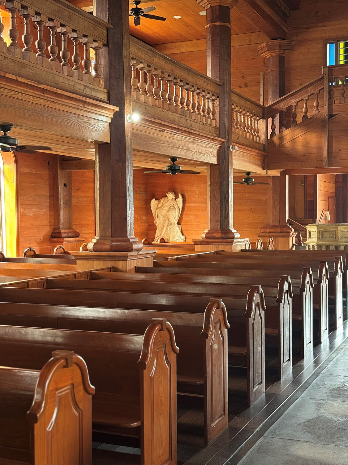 Inside a timber-lined church in St John’s, Antigua. (Photo: Daven Wu)