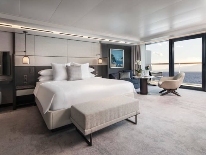 Launched in October 2022, The Ritz-Carlton Yacht Collection now has three vessels, including the 298-guest Evrima and 448-guest Ilma in its fleet. Each ship is designed to be a floating version of The Ritz-Carlton hotels, complete with art-filled spaces, signature spa treatments, spacious gym and exclusive shore excursions. Every suite is luxuriously and elegantly appointed with a private terrace and floor-to-ceiling windows. A unique feature is the floating platform with a central pool and loungers that are set up at selected destinations for guests to swim in the ocean and enjoy activities like kayaking, paddleboarding and Seabob motorsports.