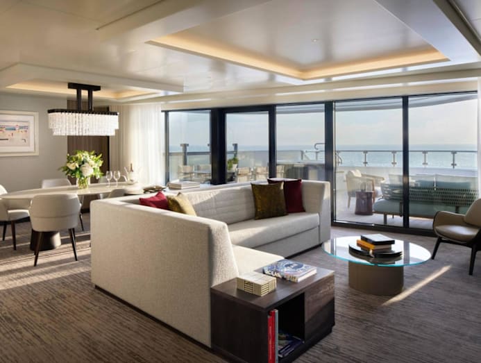 The 794-foot Luminara made its debut in July 2025 and can accommodate 452 guests across 226 suites, ranging from the 294 sq ft Terrace Suite to the mega-opulent 1,047 sq ft Owner’s Suite that includes an outdoor Jacuzzi. There are five dining venues on board serving Italian, modern Asian, Middle Eastern and Mediterranean cuisine, as well as seven bars and lounges.