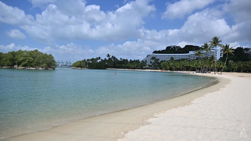 Siloso Beach on Feb 1, 2026 following a crocodile sighting at Sentosa Cove the day before. (Photo: CNA/Raydza Rahman)