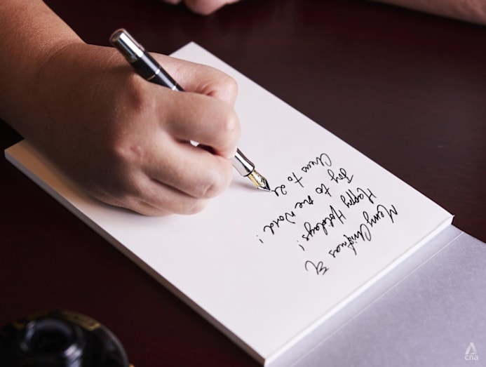 “You could fill one fountain pen with a bottle of ink many, many times, and you will generate far less waste than you would if you use a box of rollerball gel pens,” Lee told CNA Lifestyle when we visited him at home.