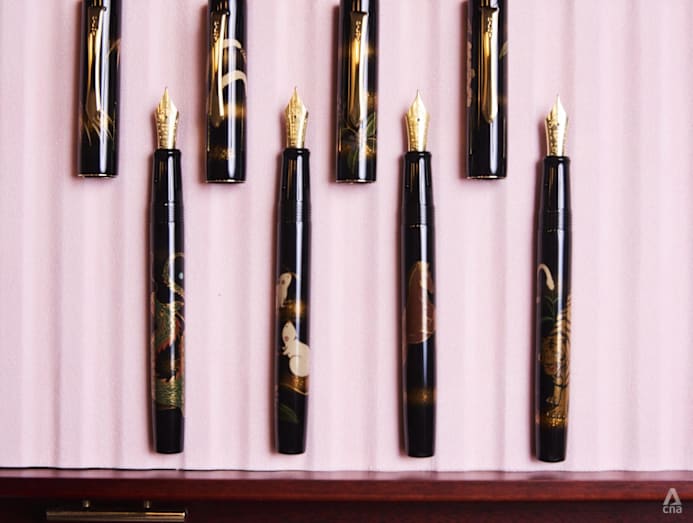 Four fountain pens from the Maki-e Zodiac pen series by Japanese brand Namiki, owned by Pilot. Each pen retails for S$3,633 on local pen store Aesthetic Bay’s website as of current. (Photo: CNA/Kelvin Chia)