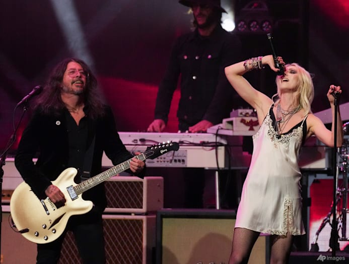 Dave Grohl of the Foo Fighters, left, and Taylor Momsen perform a medley during MusiCares Person of the Year honouring Mariah Carey on Friday, Jan 30, 2026, in Los Angeles. (Photo: AFP)